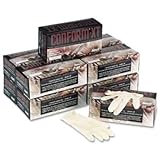Provides the highest degree of dexterity available with the strength and comfort of 100 percent natural rubber latex. For laboratory analysis/technical work, intricate parts handling, food processing and handling, quality control, electronics assembly, light-duty maintenance and cleanup. Meets FDA 510K regulations. Fits either hand. White, nonsterile. 5 mils thick. 100 gloves per dispenser. Ideal for detergents and cleaning liquids, janitorial and maintenance work, wiping down parts and machinery that are free of lubricants.