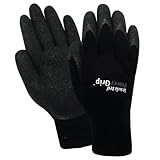 Insulated powergrip has textured rubber palm. Glove is medium in size. Thermal 10 gauge natural poly cotton knit liner is included. Available in black color.